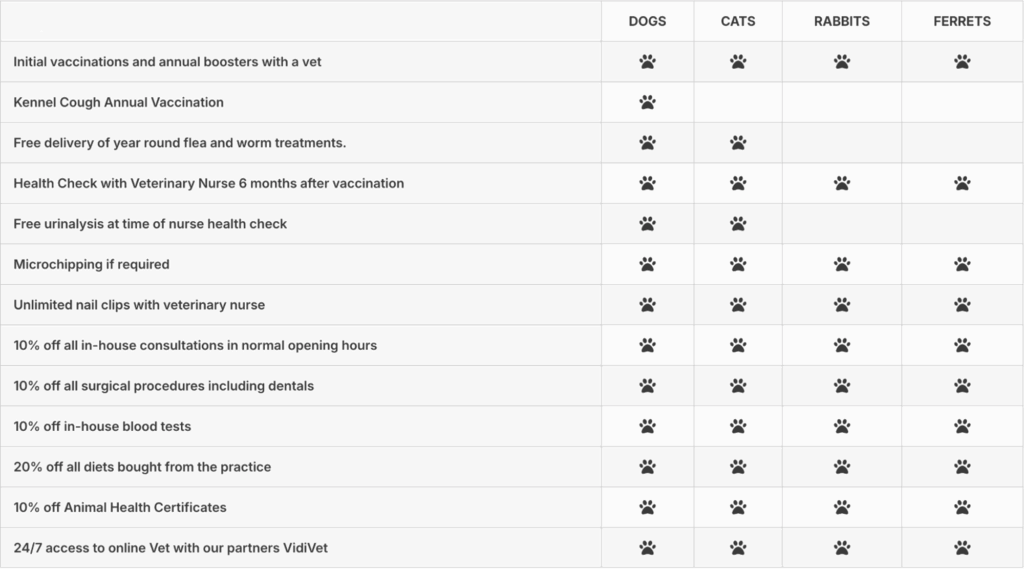 There is a joining fee of £10 for your first pet, collected with the first Direct Debit.